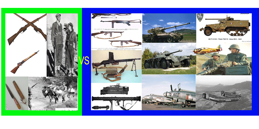 ملاحظة: في بداية الثورة ، كانت الإمكانيات العسكرية لجيش التحرير شبه معدومة وبدائية. كانت أسلحتهم تعود للحرب العالمية الثانية بل حتى الأولى. إعدم التناسب في الكم والسلاح فرض على المجاهدين أحيانًا تجنب مواجهة العدو. ليس لأنهم كانوا جبناء أو خائفين ولكن للحفاظ على حياتهم وبالتالي استمرارية الثورة. فما وزن بندقية صيد ضد الأسلحة الآلية , الدبابات , المدفعية والطائرات القاذفة |